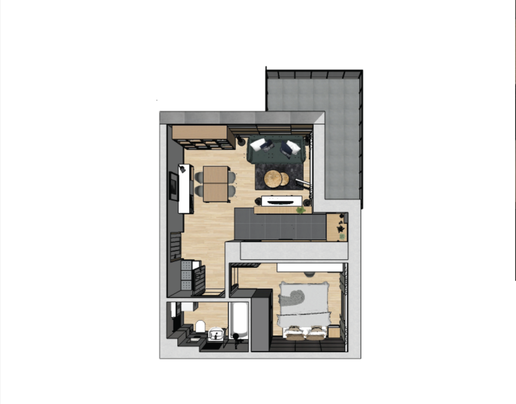 This is a type of studio apartment. There are 3 main needs In this apartment ,the sleeping area, kitchen area, and living room. The room is very minimalist area and need some adjustments.
